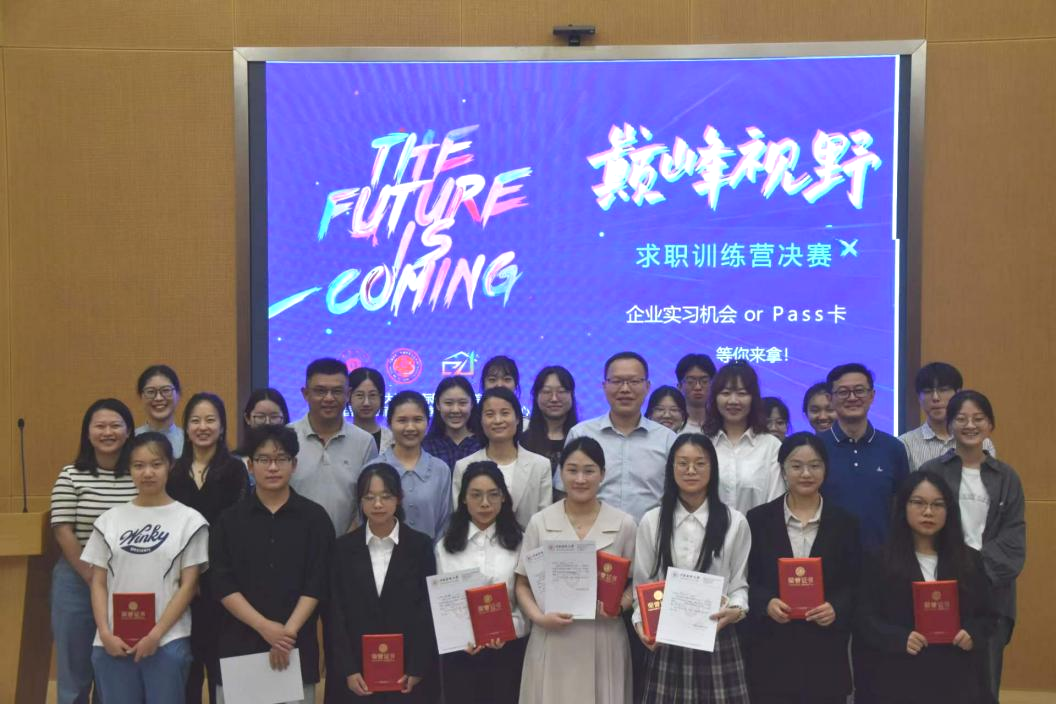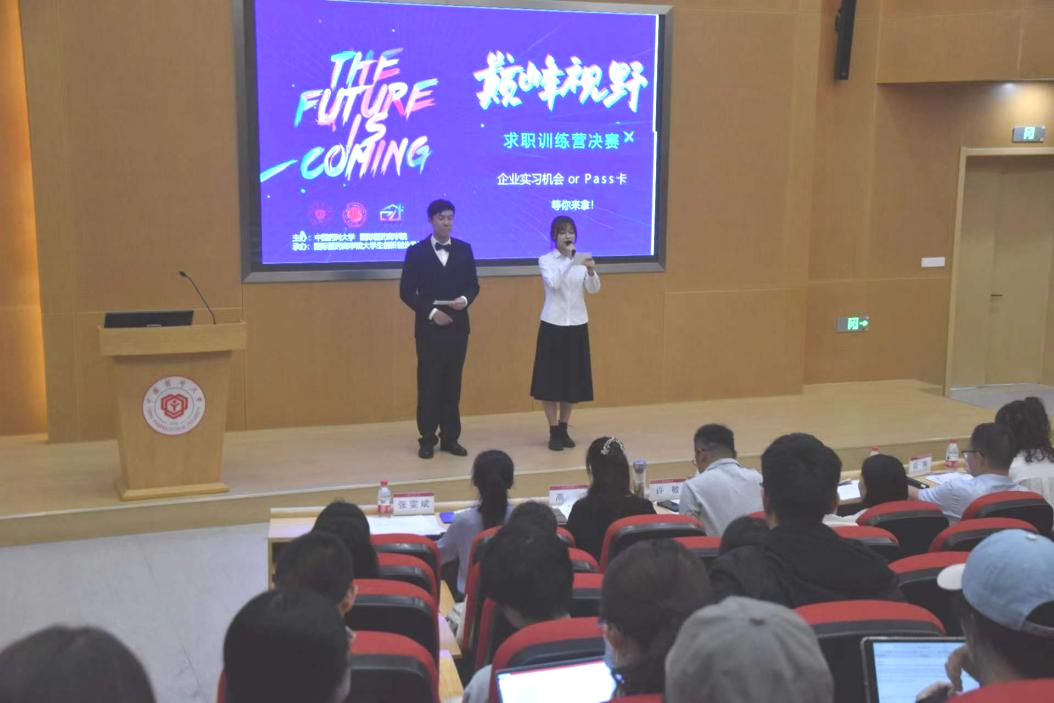 6月5日晚,h动画 在江宁校区经管文楼111报告厅举办“巅峰视野 11.0”求职训练营决赛。江宁区人才服务中心主任许敏、江宁团区委学少部部长陈蓉、江宁教育局团工委书记高原、南京东万生物技术有限公司总经理张健、南京诺唯赞生物招聘经理张雯斌、h动画 就业办主任刘胜利等嘉宾同百余名学生共同参与本次活动。