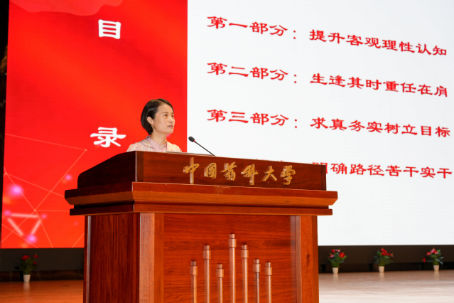活动开始,学院党委书记丁素军对2024级新生的到来表示热烈的欢迎,随后讲授了主题为《勇担重任、求真务实,共筑医药强国梦》的专题思政课,从使命、定位、梦想、行动四个方面激励同学们坚定理想信念、提升客观认知、树立长远目标、持续拼搏进取,为人民健康福祉而不断努力。