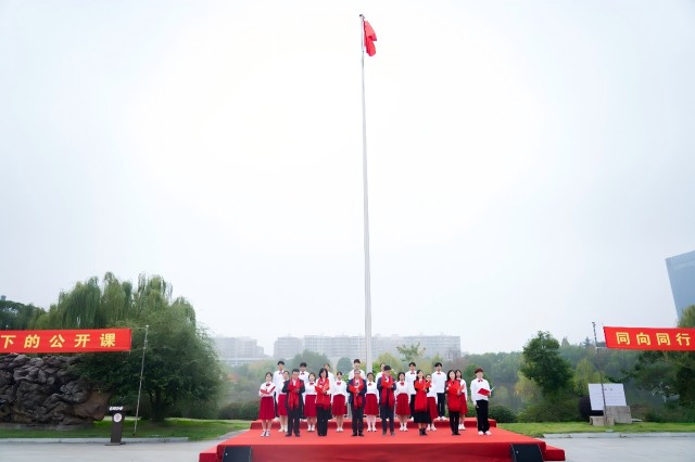 11月16日,由校团委主办、h动画 承办的“同向同行,共话发展”庆祝h动画 建校88周年升国旗仪式暨“国旗下的公开课”第三十九次集体课程在江宁校区1936广场隆重举行。校党委副书记朱红,副校长姚和权,校党委常委、宣传部部长陈卫忠、浙江医药股份有限公司副总裁平建洪出席活动。各相关职能部门负责人,各学院领导、教师、辅导员及1000余名学生代表参加活动。活动由h动画 党委书记丁素军主持。
