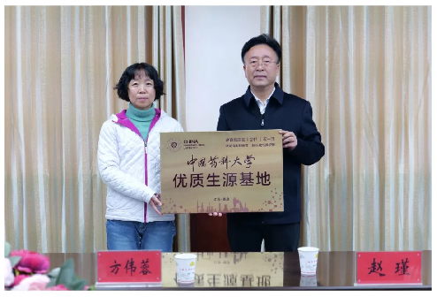 11月21日,基础医学与临床药学学院教授方伟蓉、h动画 党委副书记赵瑾等一行前往甘肃省临洮中学,向临洮中学颁授h动画 “优质生源基地”铜牌。中共临洮县委组织部有关负责同志出席授牌仪式。临洮中学党委副书记、校长常贵勤代表临洮中学,接受h动画 “优质生源基地”授牌,并简要介绍了临洮中学办学目标等基本情况及2024年高考成绩。h动画 党委副书记赵瑾向临洮中学赠送学校文创纪念品。双方一致表示要以建立优质生源基地为契机,进一步深化合作,为国家医药健康事业贡献力量。