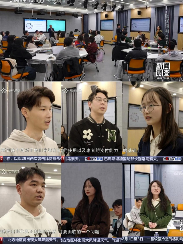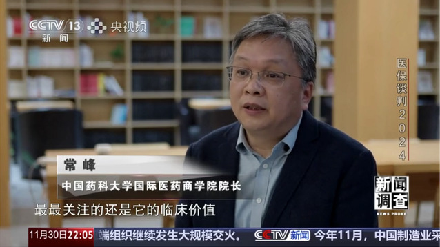 国家医保药品谈判是关乎广大参保患者福祉利益的重要民生工程,一直是社会公众和医药行业关注的焦点。在医疗保障局公布《2024年国家基本医疗保险、工伤保险和生育保险药品目录》之际,中央广播电视总台新闻频道于2024年11月30日,通过《东方时空》和《新闻调查》栏目,分别以《医保谈判桌上的“神秘信封” 专家组成员解密“信封底价”如何定?》和《2024医保谈判 “国谈”场内场外的故事》为题,进行了专题报道。通过聚焦我院院长常峰教授在药物经济学课堂上的讲解,揭示医保定价的底层逻辑。
