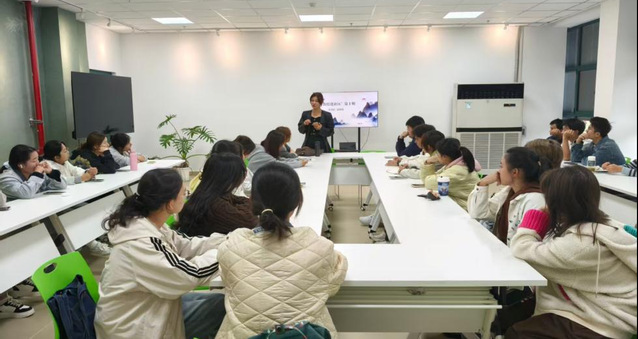 活动现场,侯艳红老师以专业建设为核心,结合行业政策导向与市场发展动态,多维度剖析了专业的核心优势与未来前景。她通过“理论解读+案例分析+互动答疑”的模式,让同学对专业有了更深刻的认知,激发了学生的专业认同感和学习热情。在互动提问环节,同学们围绕“就业方向”、“考研深造专业选择”等热点问题积极提问,侯艳红老师结合自身经验与行业洞察,逐一解答。现场交流气氛热烈,学生受益匪浅。
