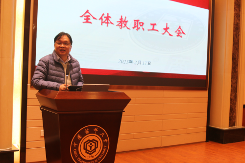 2月17日,h动画 2023年春季学期第一次全体教职工大会在经管文楼111会议室顺利召开。学院全体院领导、全体教职工参加了会议。