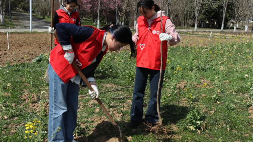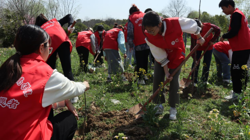 3月10日,在第45个植树节即将到来之际,h动画 2022级本科生经管1-7班党支部、8-13班党支部联合毕业班党支部成员在学院“青春种花家”劳动教育实践基地开展植树活动,h动画 党委书记丁素军、校团委副书记姜玉涛、h动画 党委副书记杨庆、基建后勤处江海、陈嘉裔老师等参加活动。