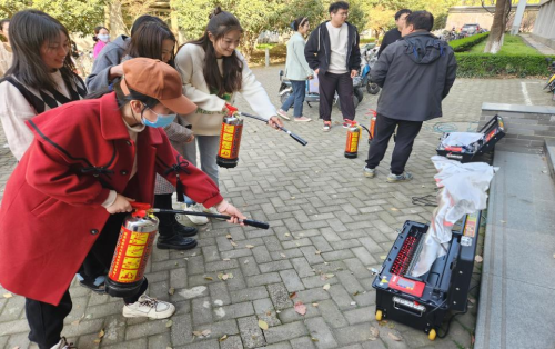 校保卫处消防科科长李腾为学院师生开展消防安全培训,围绕“我们为什么要重视安全教育”和“我们为什么大部分时间会不太重视安全工作”两个问题向同学们阐述安全工作的根本目的,并通过具体案例,生动介绍了宿舍安全、实验室安全以及电动车充电安全等注意事项,现场科普了初期火灾的扑救要领和火场逃生技巧,帮助同学们警惕风险,提升自身初期火灾扑救能力。随后经管文楼消防警报拉响,开展消防逃生演练并进行实地灭火演练。保卫处工作人员按照“一看二摇三拔四喷”干粉灭火器的使用步骤演示了灭火器的正确使用方法,同学们按照动作要领进行了实战演练,帮助同学们更好地掌握灭火器使用方法、熟悉灭火步骤,从而在面对火情时可以做到不慌不乱,更好地保护自己和他人的生命安全。