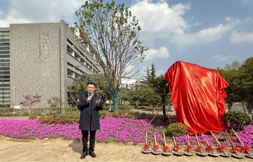 4月1日下午,h动画 举行“久园”揭幕仪式。副校长陆涛、h动画 h动画 领导班子、原医药企业管理系(h动画 前身)副主任陈锦新、h动画 原院长朱圣和、88级医药企业管理专业校友以及师生代表等出席仪式,仪式由学院党委书记丁素军主持。