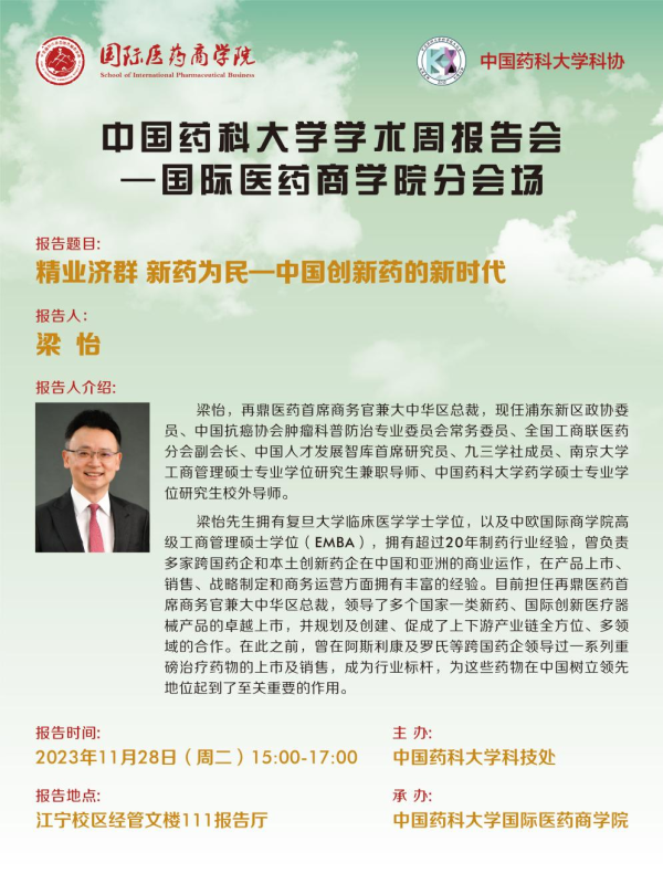 报告人:梁怡 再鼎医药首席商务官兼大中华区总裁