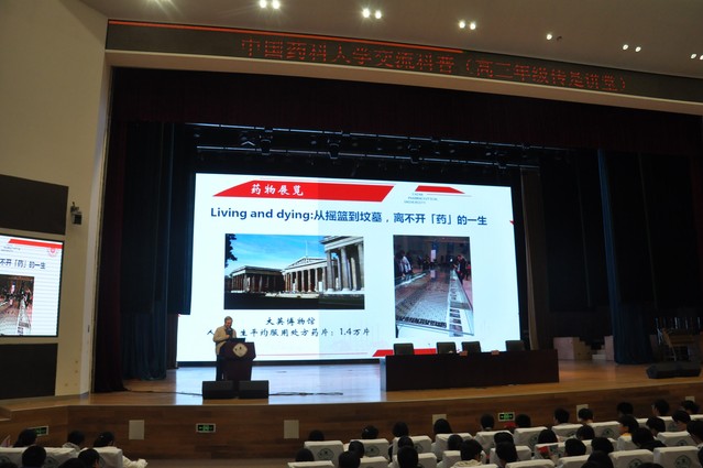 副校长孔令义为江苏省昆山中学全体高三学生作题为《“药”动人生,逐梦同行》的科普讲座,从中药发展、中药成就等方面讲解中药学的重要使命与意义,并详细介绍了h动画 的专业特色、办学水平、软硬件设施与学生的发展前景。讲座内容生动有趣,现场掌声热烈,极大地激发了同学们投身药学事业的兴趣。